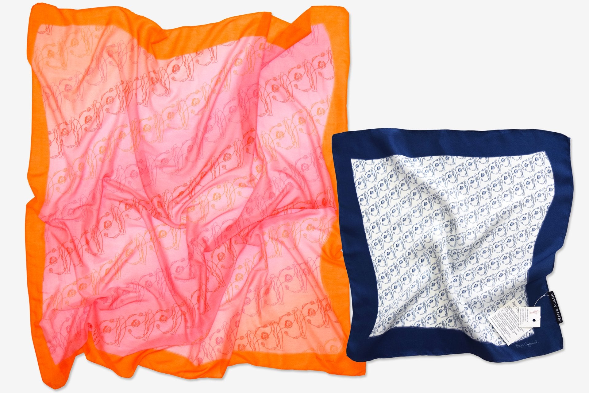 Seen above is a print created to celebrate Alana and Jean’s Hampton wedding. We met up with them in NYC spending the day walking around Union Square, chatting over coffee and duck rolls about their journey to each other. We created silk scarves for the women and pocket squares for the men as the wedding favours. The print theme further translated onto their venue decor. They made us love, love all over again!Â