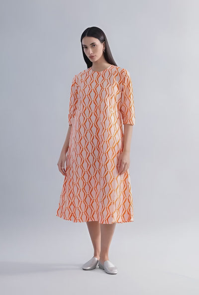 Our signature diamond print adorns the surface of this classic dress. The dress has a fitted waist and box pleats on the side giving a very slimming cut. The print speaks of eternal love as a couple is leaning in for their first kiss. It unites and embraces love from all genders and communities. This dress is perfect for a day at work or a lunch with friends and family. Made with 100% cotton, it feels light and breathable on the skin.