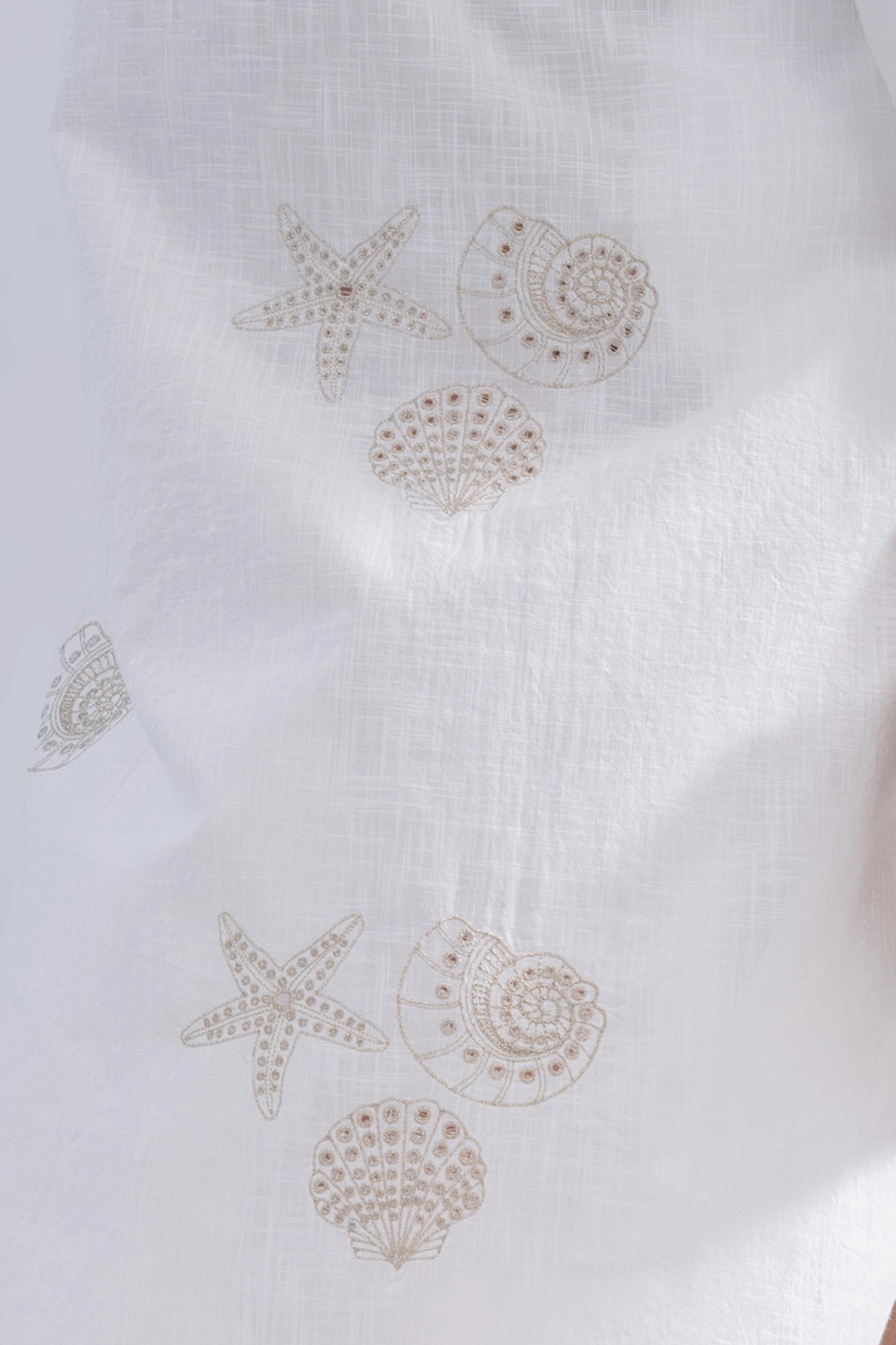 This sealife inspired gold shiffli shirt dress is an elegant must have for your next tropical vacation. The fabric is custom designed for ultimate uniqueness. Made with 100% cotton, it feels light and breathable on the skin.