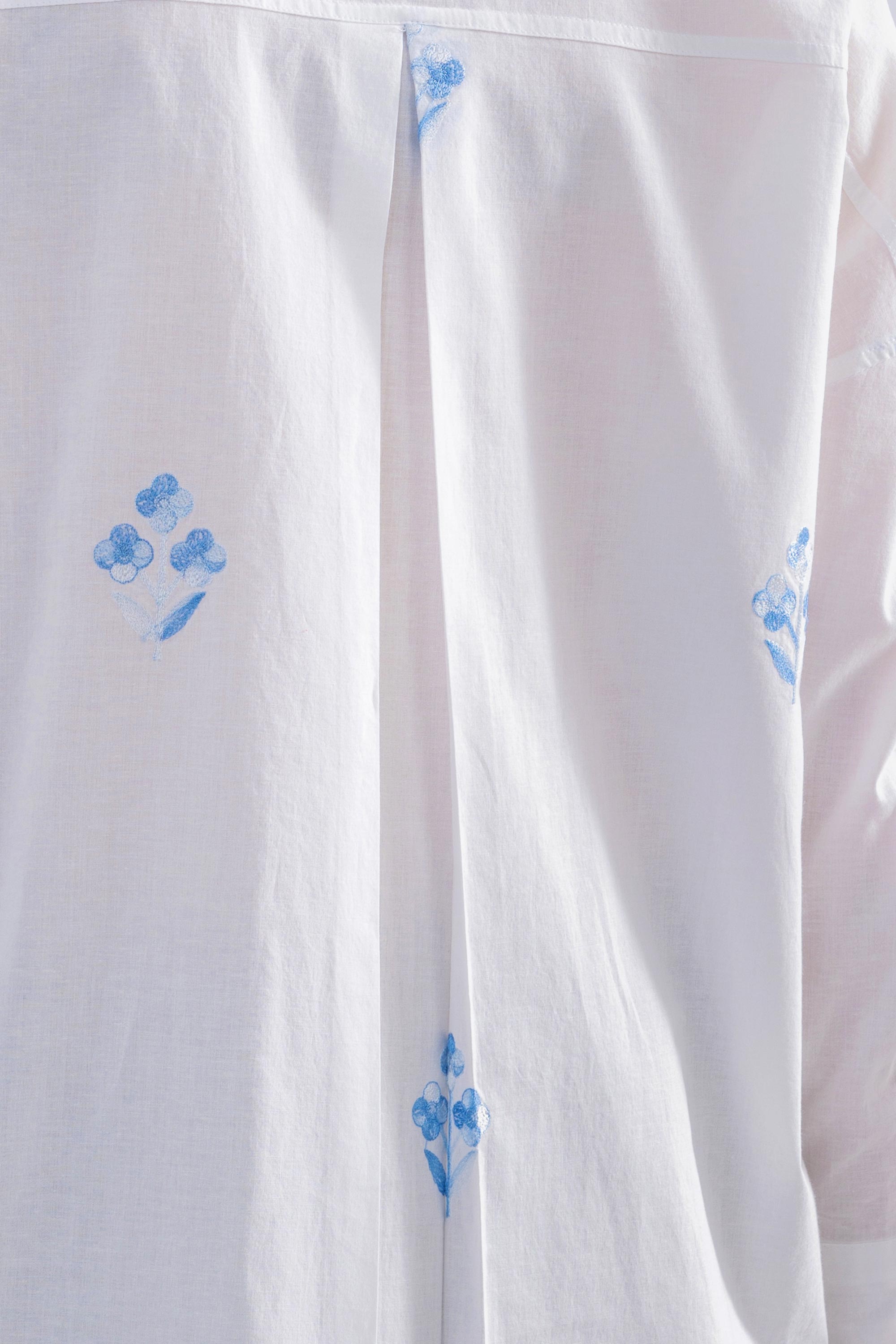 This versatile cotton shirt has intricate ombre embroidery and lace detailing. It is perfect for a day at work or a lunch with friends. Made with 100% cotton, it feels light and breathable on the skin.